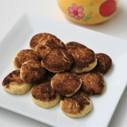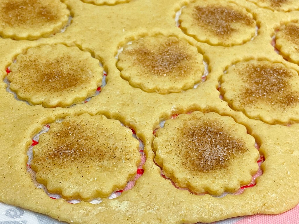 Pincele as bolachas com leite e polvilhe com açúcar e canela.