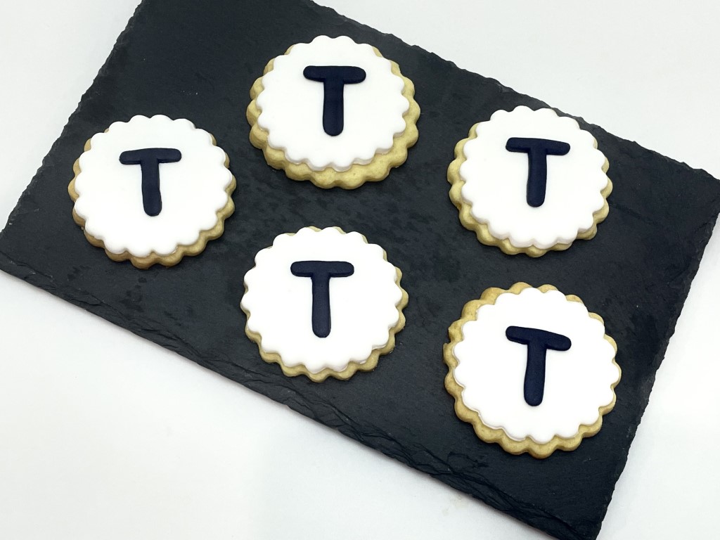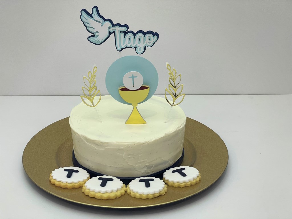Para acompanhar o bolo da Primeira Comunhão, fiz também umas bolachas decoradas com pasta de açúcar para oferecer aos poucos convidados que tivemos.
