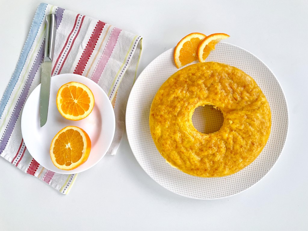 Então fui consultar a minha pasta Bolos no Cookidoo e decidi adaptar o Bolo Manga-Laranja para ser cozido na varoma.