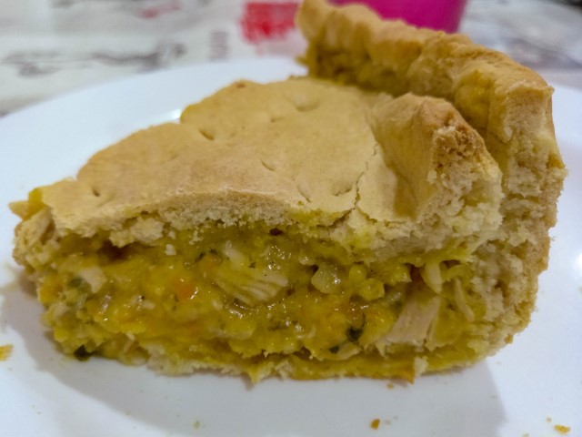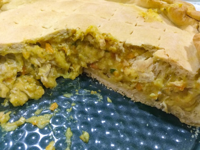 Quando fiz a Massa com Cogumelos Salteados e Bifes de Peru Caramelizados, sobrou muita carne, porque eram muitos bifes. Como forma de os aproveitar, fiz esta empada, que ficou divinal!
