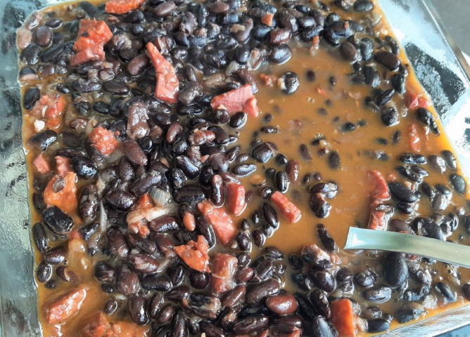 Eu costumo usar feijão seco, ponho a demolhar e cozo previamente. É mais saudável e mais barato. Mas podem usar feijão de lata e poupam este trabalho prévio.