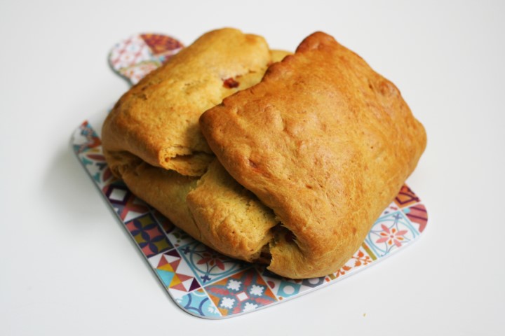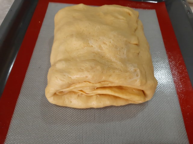 Dobre as pontas da massa para dentro, coloque o restante recheio e volte a dobrar.
