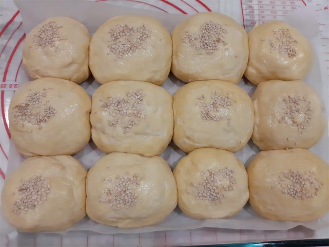 Pincele com leite, polvilhe com sementes de sésamo e leve ao forno pré-aquecido a 180ºC por 15 minutos.