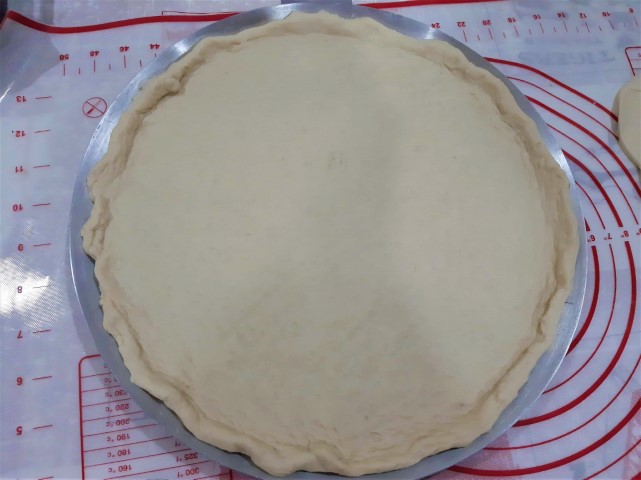 Convém esticar a massa muito bem, porque acaba por crescer quando está no forno. Fica uma massa alta e fofa.